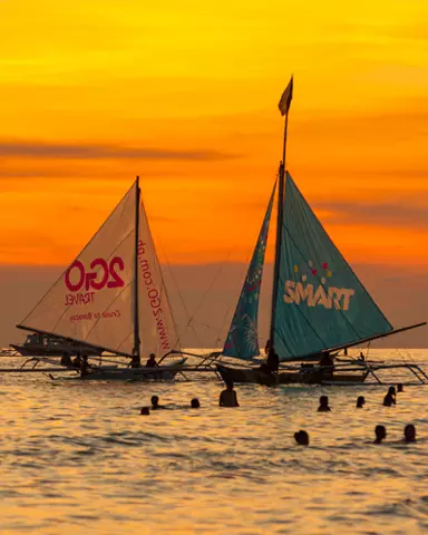 幾乎所有到長灘島渡假都會體驗到風帆船這個活動,想安排在夕陽時分搭風帆船,建議的時間約在16:15~16:45間出發,如此當返回碼頭時~剛好可在海邊拍夕陽,而另外一個適合搭風帆的時間是上午9:00~10:00出發,這時陽光還不強烈,且船隻不多~是您可考慮的另一個時段。