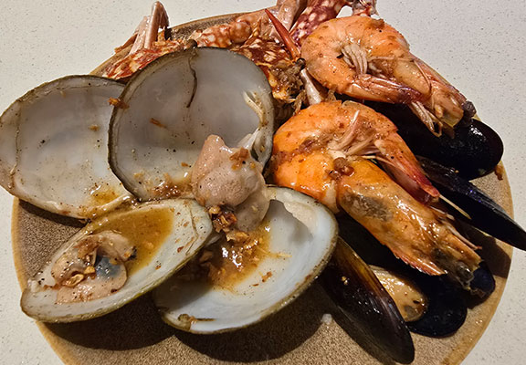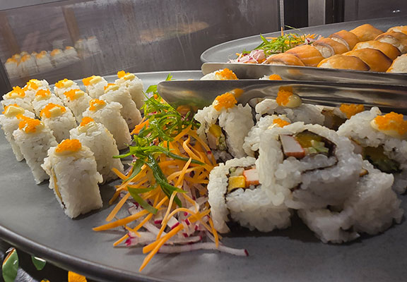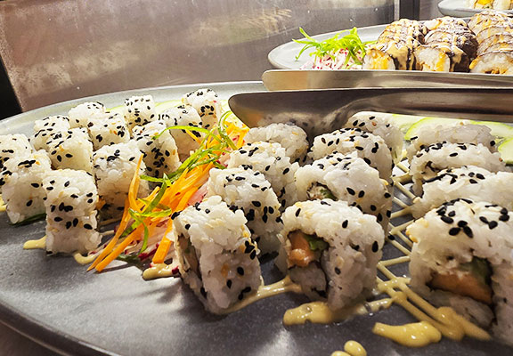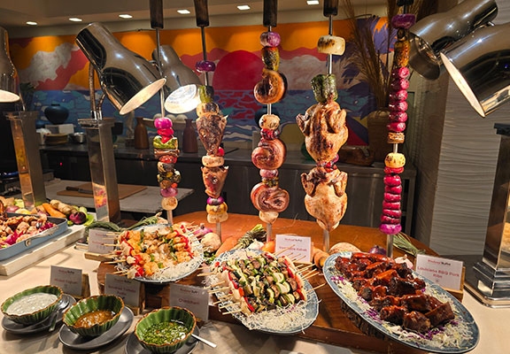 菜色豐富多樣:現場烹調的新鮮海鮮、日式壽司、中式小點、菲式現切牛排、串烤BBQ