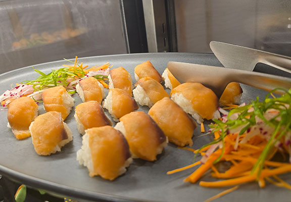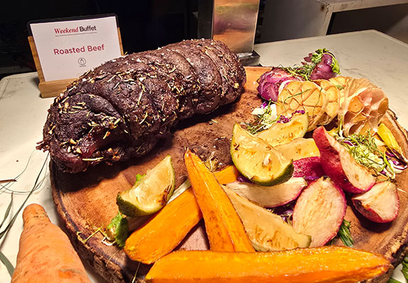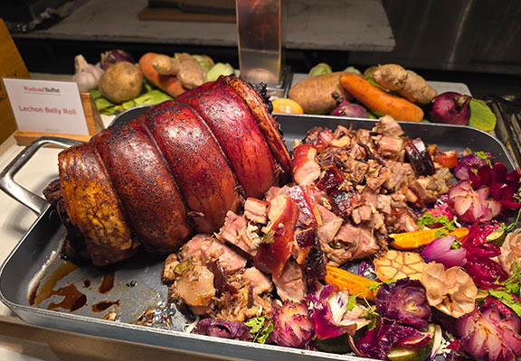 除了海鮮與燒烤,餐檯上琳瑯滿目的 國際佳餚與亞洲風味 也令人驚艷:尤其是馬鈴薯泥,雖然外表樸實無華,卻蘊藏著令人難忘的細緻口感,每一口都帶著溫暖的家常感。看似簡單的馬鈴薯,調味恰到好處,入口時柔滑細膩、綿密如雲,奶香恰到好處、不會過於濃重,讓人一口接一口停不下來,每一口都能吃出主廚的細心與用心。根據餐廳主廚經理的分享,這份看似簡單的美味其實是團隊歷經多次試驗、精心調配比例後的成果。從食材挑選、火候掌握到最後的打發工序,每一步都充滿講究,成就了這道被譽為餐廳靈魂的 招牌馬鈴薯泥 ——低調卻令人回味無窮的經典之作。