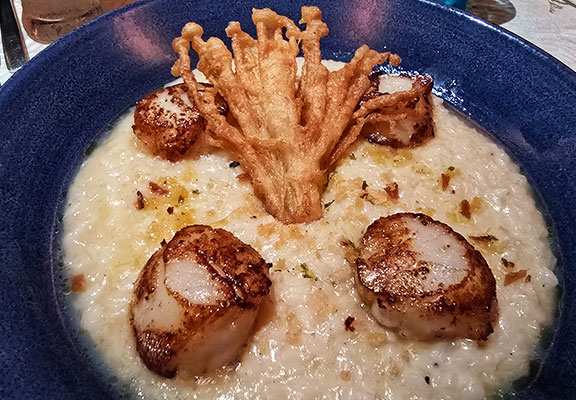 主餐:干貝燉飯 / 日本鱈魚品、甜點:焦糖千層酥 / 腰果百香果三明治