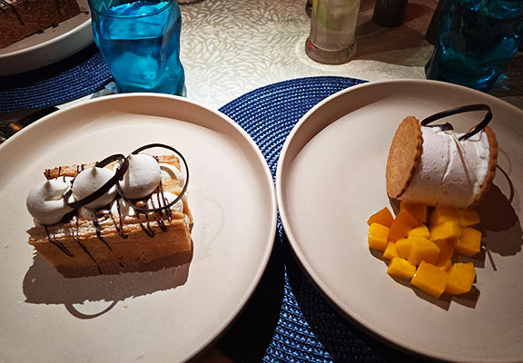 甜點:焦糖千層酥 / 腰果百香果三明治