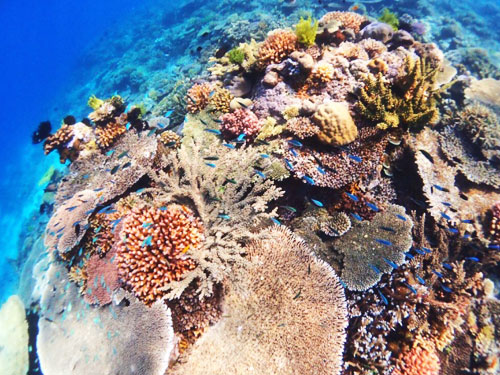 位於靠外海的Star Beach浮潛區,能見度跟珊瑚都保存完好,不受到太多干擾破壞,有淺水繽紛美麗的珊瑚滿足浮潛游泳者,也有20米滿滿魚群的大斷層能滿足自潛者,這裡像一座天然水族箱一樣,色彩斑斕的魚群珊瑚海星,絕對讓你玩到不想上船