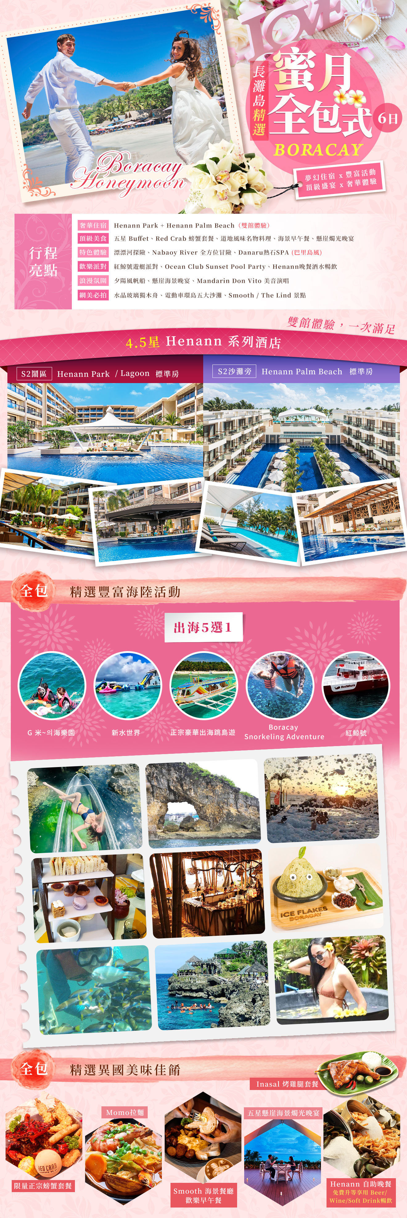 費用一覽 長灘島精選蜜月全包式6日(2人即可成行;8人以上可獨立一團)