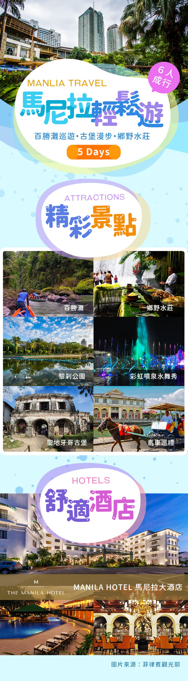 馬尼拉輕鬆遊5天4晚 (6人成行)