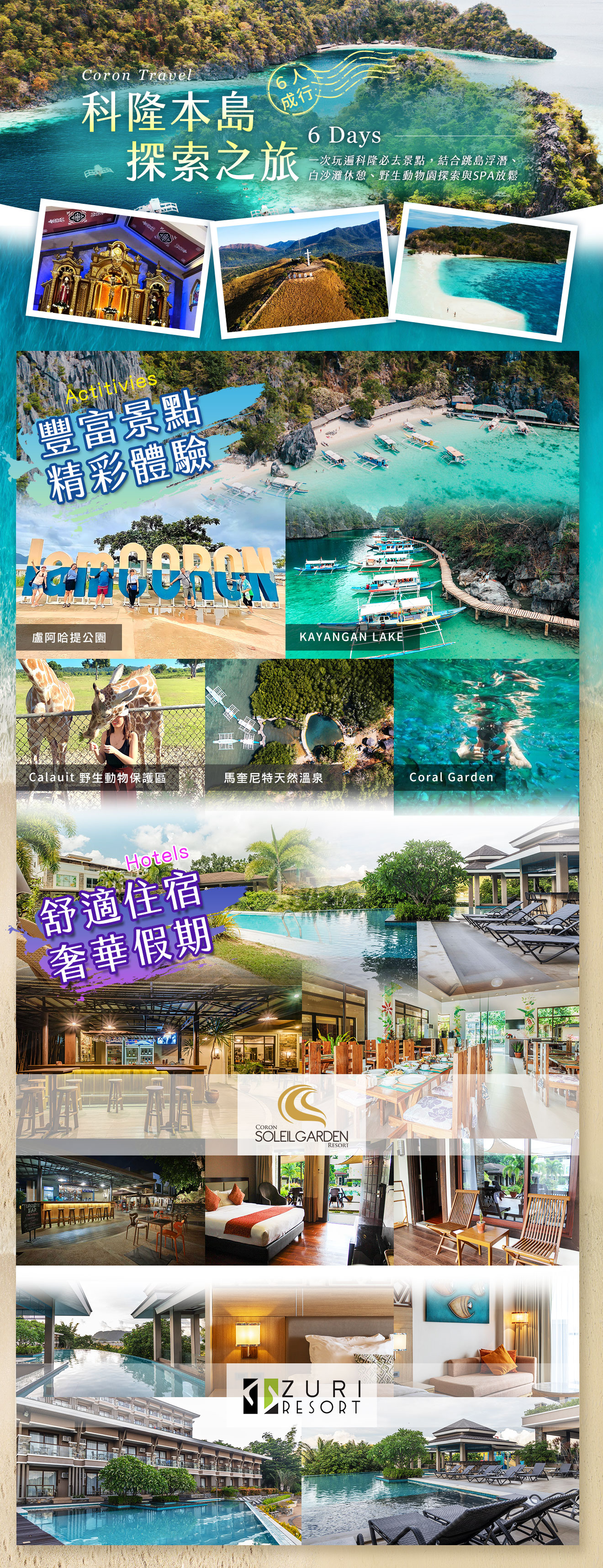 飯店內精緻早餐   出海島上享用野餐BBQ   當地風味餐  宿 Zuri Resort Coron  標準房 或 同級飯店標準房